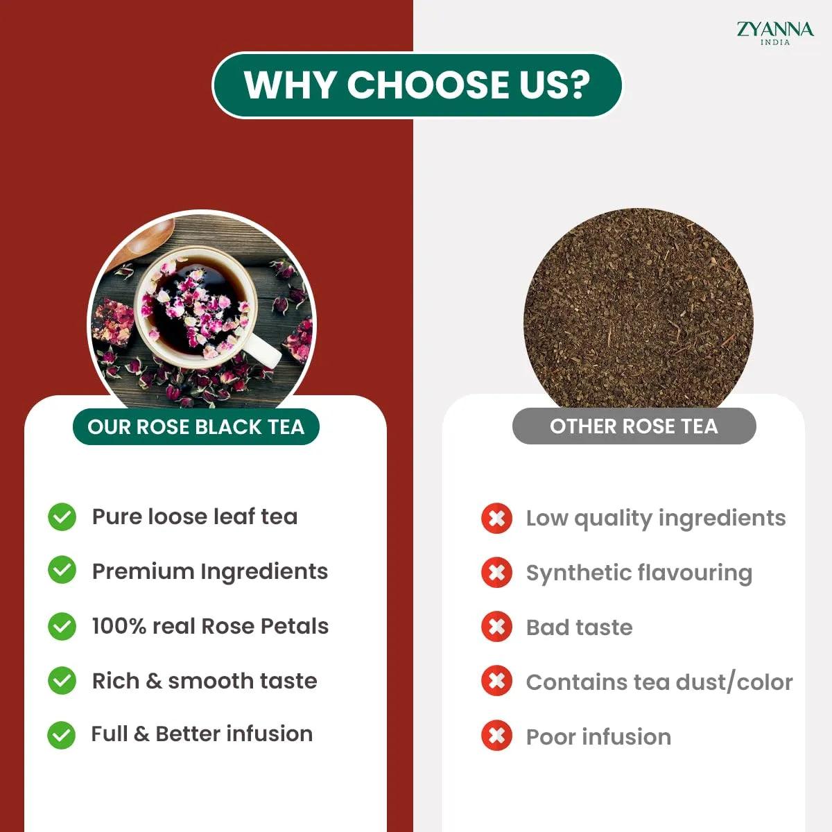Natural Ingredients: Contains high-quality black tea and real rose petals, free from artificial flavors or additives.